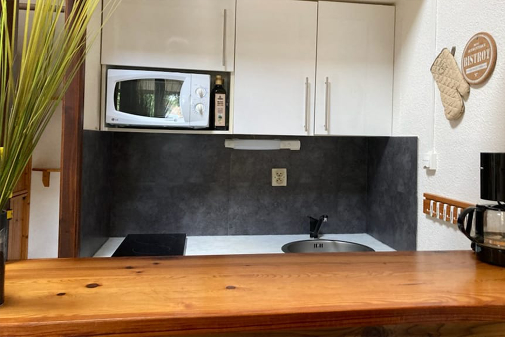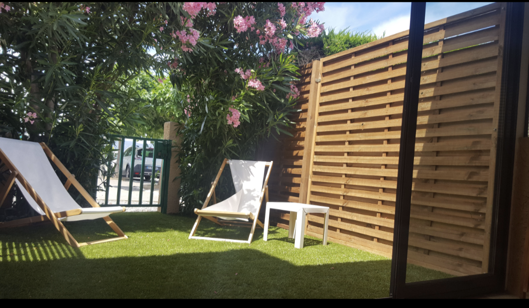 À l'extérieur, une véranda et un petit jardin vous offre un espace où vous pourrez prendre vos repas en plein air.