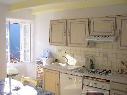 - cuisine équipée d'un réfrigérateur, d'un four électrique et cuisinière mixte 3 feux gaz et 1 électrique