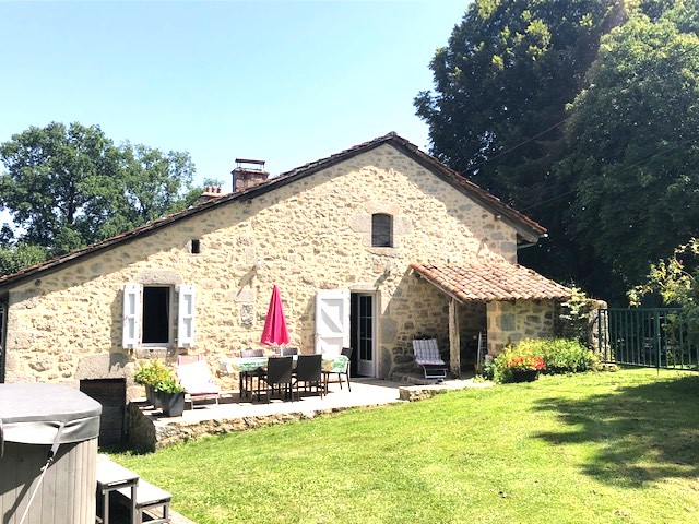 Le Jacuzzi est à l'extérieur dans le jardin privé avec une terrasse.
