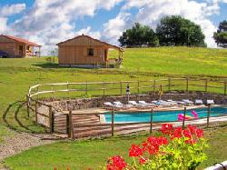 Au calme, en pleine nature, en Auvergne, Sud Cantal, 5 chalets en bois*** avec piscine chauffée, tout confort, avec terrasse panoramique couverte, jolie vue dégagée, nichés au coeur d'un prairie de 7 ha arborée et fleurie.