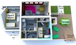 Il y a 2 chambres spacieuses (1 dite adulte et 1 enfants avec lits superposés.