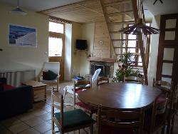 Il fait 75m2 et peut accueillir 8 personnes adultes. Au rez de chaussée se trouve une salle à manger avec une cuisine américaine ; une chambre, des toilettes. A l'étage : une chambre, 2 mezzanines, une salle de bain avec baignoire et toilettes. Décoration à dominate bois. D'un côté (jardin), la vue est sur la vallée et les montagnes et de l’autre côté sur le village. Nous mettons gracieusement à disposition du matériel pour bébé : lit à barreaux, chaise haute, table à langer, pot, baignoire enfant.
