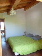 La chambre est séparée de l'espace vie et comprend 2 lits de 90cm pouvant s'unir en un seul lit de 180cm.De ce côté, la vue du balcon donne sur la piste de ski, et sur la chaîne des Arravis. Des randonnées pédestres, à raquettes ou en VTT sont accessibles du chalet.