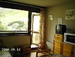 Loue appartement 5/6 personnes aux pieds des pistes. Comprend entrée,2 chambres , salle de bain wc, séjour avec coin cuisine.Tout équipé.Balcon exposé plein sud sans vis à vis.A 100m des remontées mécaniques et ventes de forfait.Départ et retour skis aux pieds.