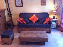 - Salon avec un canapé convertible "bed express" (2 places, 140), avec TV, lecteur DVD, CD, radio.