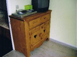 avec lits superposés, sdb, lit bz, tv, lecteur dvd, kitchenette, cafetière, grille pain ....