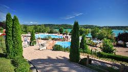 Niché dans un magnifique parc arboré, le camping Castel La Pergola 5* s'étend en terrasses le long de la rive sud du magnifique Lac de Chalain.