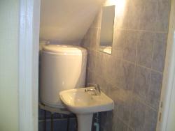 salle de bain avec douche , wc , lavabo .