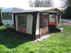 A LOUER BORD DE MER SUR CAMPING DU PONT DE L'ETANG à FREHEL (22) CARAVANE 4 PLACES + AUVENT (frigos, réchauds à gaz, micro-ondes, cafetière électrique, table et chaises de jardin, parasol ...)