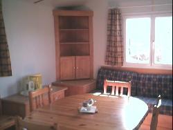 Tout confort : grand salon, salle à manger, une chambre avec un lit de 190 X 140, une chambre avec deux lits, une douche avec lavabo, un W.C. séparé, un bloc cuisine avec plaques de cuisson, micro-ondes, réfrigérateur, congélateur séparé, vaisselle.