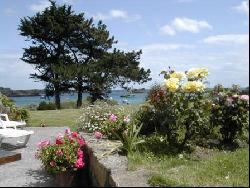 Maison dans jardin clos de 1800 m2, 3 chambres, pour 4 adultes et 2 enfants, salle de bain, salle de douche, tout confort moderne. Site exceptionnel vue splendide, accès direct à la mer.