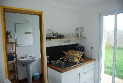 Pièce de vie avec un coin repas, un coin cuisine (avec réfrigérateur, four, micro-onde, plaque de cuisson, grille pain, mixer, cafetière, bouilloire, batterie de cuisine complète, vaisselle…) et un coin salon/chambre avec un couchage BZ de qualité pour 2 personnes.