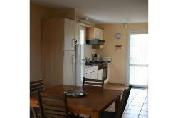 RDC: Pièce à vivre avec cuisine aménagée et entièrement équipée (micro-ondes, four chaleur tournante, lave-vaisselle, grille-pain, bouilloire, réfrigérateur et congélateur)