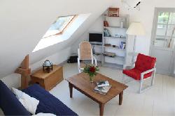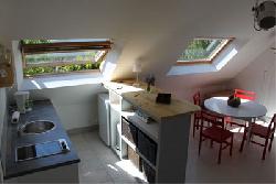 Dans résidence privée, gîte avec logement à l'étage pour 2 à 4 personnes avec jardin et accès privatif sur le Golfe du Morbihan (moins de 100m de l'eau). Surface habitable d'environ 50 M2 comprenant une entrée indépendante au rez de chaussée et baie vitrée ouvrante sur jardin. A l'étage, séjour avec cuisine ouverte, chambre, salle de bains