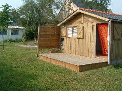 ravissant petit chalêt en bois, confortable et lumineux, entièrement équipé pour 2 personnes, situé dans un grand jardin arboré de 1000 m2 (totalement indépendant), avec douche,kitchenette (2 plaques, frigidaire, placard), divan -lit 2 personnes.
