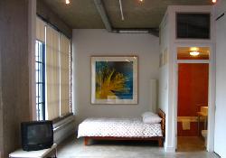 Loft style New-York réhabilité dans une ancienne fabrique de textile. A la frontière du vieux-Montréal et de toutes ses activités de plein air. Gare centrale et palais des congrès à 1 seul pâté de maison. rue Sainte-Catherine et place des arts (festivall de jazz francofollies festival juste pour rire etc...) accessibles à pied ! très bien situé donc. espace ouvert plancher béton ciré grandes fenêtres originales restaurées lit 2 places et canapé-lit pour 2 autres adultes ou enfants .Petit bureau luminosité éclatante .Cuisine équipée, climatisation. Un restaurant est disponible au Rez de chaussé de l'immeuble...