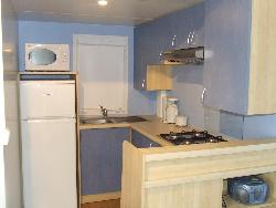 cuisine équipée en vaisselle et ustensile, grand frigo avec congélateur, micro ondes, mini four électrique