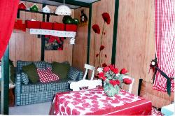Le coin cuisine « Kitchenette » est astucieusement aménagé pour exploiter au maximum l’espace. Il est équipé d'une plaque de cuisson 4 feux avec hotte aspirante, d'un évier avec un kit vaisselle et d'ustensiles de cuisine adaptés au nombre de personnes. Les repas peuvent être pris dans le salon ou sur la terrasse aménagées d'un salon de jardin avec table et chaises.
