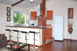 Notre logement saisonnier meublé, climatisé et très accueillant. Laisse à votre disposition un F2 de 53 m², haut de villa, peut accueillir 6 adultes. Situé à 11, rue Dorbritz, Magenta, Nouméa-Sud 98800, il est entièrement équipé, d'un grand confort, internet wifi. Il est situé à quelques dizaines de mètres de la plage de Magenta, dans un quartier calme, à 4 km du centre-ville, à 6 km de la plage de la Baie des Citrons et de l’Anse-Vata. Complètement indépendant, il permet cependant d'être en contact avec les propriétaires, soucieux de votre bien-être. La pièce de séjour est spacieuse 30 m², moderne, équipée d'un coin cuisine avec plan bar, un grand salon en angle et un canapé convertible. Le coin repos est divisé en deux parties : une chambre avec un lit de 140 x 190 puis un bureau pouvant faire office de chambre avec la possibilité de loger deux personnes. Le logement dispose également d'une buanderie privative, d'un dressing et d'une salle d'eau. A l'extérieur vous pouvez profiter d'une grande terrasse 25 m² avec un barbecue.