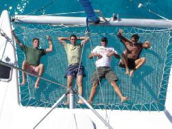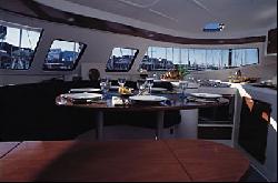 Société de charter plaisance, propose la location d'un ctamaran à voile de 12 m avec son skipper pour des croisères à thèmes: