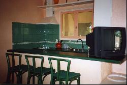 Les appartements sont situés au sud de la petite ville en vogue de Porto-Vecchio (à 6 km), aux abords de la fameuse Baie de Santa-Giulia, dans le lotissement "Santa Giulia Palace", avec un accès à la piscine de la résidence (11x20m). Tabac, librairie, superette, restaurants et tennis sont à 400 m.