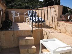Village typique corse, calme, terrasse, vue mer, vallée, parking 150m d'entrée village, à 5km plage et services.