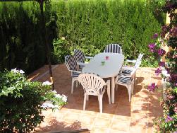 MAISON MITOYENNE SITUEE DANS UNE PETITE RESIDENCE TRANQUILLE.Logement très spacieux et agréablement meublé: 2chambres à coucher(1X Gd lit+ 2x lits simples) 5ème lit d'appoint possible.Grande terrasse sud,petit jardin clos, (à l'ombre l'après midi) solarium,TV TNT( chaines en français, anglais espagnol etc) A proximité d'une grande plage de sable,des commerces,restaurants, bars et arret de bus.Le centre de Denia se trouve à 2km.Il n'y a pas de parking privé, le stationnement se fait dans la rue qui longe la residence ( très calme, frequentée uniquement par les riverains) Egalement plages de galets et rochers (plongée)à 3km.Nombreuses et agréables excursions possibles le long des cotes(en voiture ou en bateau)et dans l'arrière pays. Location de Jetski, kytesurf, planche à voile, velos, quads.Randonées sur le Montgo (ALT.800m) de difficulté différentes. Port de plaisance, lignes regulières vers Ibiza et Palma. Le propriétaire peut répondre à vos questions en français,espagnol,italien, anglais.