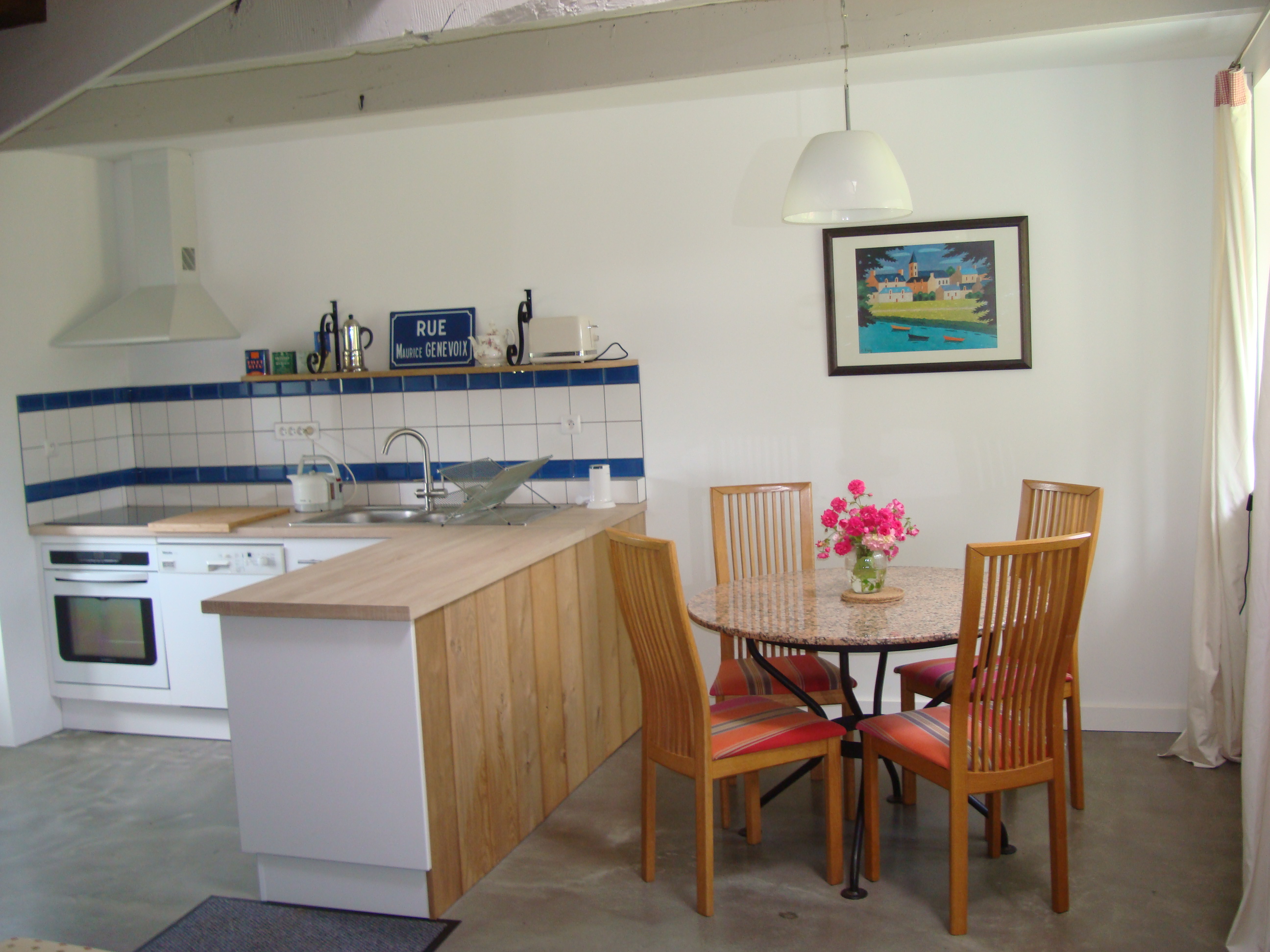 Ce gite de caractère très lumineux offre des conditions de confort optimales avec sa cuisine aménagée, son séjour équipé d’un poêle à bois pour profiter de belles flambées, ses deux chambres, l’une au rez de chaussée (2 lits 0.90x190) avec sa salle d’eau avec douche à l’italienne et WC en suite et l’autre située à l’étage avec un lit de 160x200 et à proximité, salle d’eau offrant une grande douche à l’italienne et WC séparé. Les lits sont faits à votre arrivée et le linge de maison est fourni gracieusement. Le gite dispose aussi d’une grande terrasse ensoleillée privative avec vue sur le jardin sur laquelle vous pourrez vous reposer et faire des barbecues. Enfin, vous trouverez à votre disposition de la documentation touristique et des guides de randonnées pour découvrir les charmes de la baie de Morlaix et la côte de granit rose.