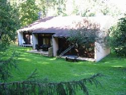 Parc verdoyant de 2.5 ha, en bordure de forêt, calme, paisible, alt 450m, tennis,randos (GR).Loue ttes saisons, chalêt 48m2, séjour, cuisine équipée, salle d'eau, 3 chambres indépendantes, terrasse 16 m2, salon de jardin.