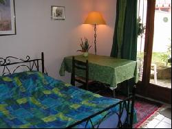 Au calme, 2 chambres d'hôtes indépendantes au rez-de-chaussée, qui allient détente. Piscine dans une propriété en bordure du vignoble. 1 ch.(iris 1 lit 2 pers.), 1 ch.(pivoine 2 lits 1 pers.). Salle d'eau et wc individuels. TV.TNT sat Chauffage central. Cour, jardin, barbecue. Piscine privée. Parking privée. Vente de miel bio AB sur place.vue sur le vignoble,
