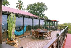 Villa de haut standing en Guadeloupe, la Villa du jardin Botanique à Deshaies en Guadeloupe est une villa de luxe meublée tout confort avec piscine privée, jardin, solarium en deck et vue magnifique sur la baie de Deshaies