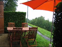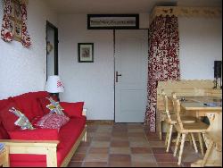 joli appartement 2pièces rez-de-jardin, vue sur Mont-Blanc et aiguilles de Warens, dans résidence de 8 chalets, comprenant une chambre avec couchages pour 3 personnes, séjour avec couchage pour 2 personnes, coin repas, kitchenette, terrasse, équipé du linge de lits, de toilette et torchons. A 2 mn en voiture des pistes et du village, très tranquille. Eté-hiver