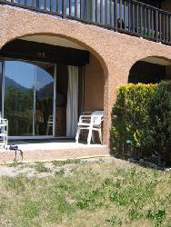 studio meublé, au coeur de briançon, tout confort, dans immeuble haut standing avec gardien, à 500 m du centre ville et des remontées mécaniques du domaine skiable de serre chevalier_ au rez de chaussée avec jardin et espaces verts _ petite terrasse _ vue sur le mélézin _ parking _ local à ski _ ascenceur _ salon-séjour avec canapé-lit pour 2 personnes, 1 coin cuisine toute équipée, 1 salle de bain, 1 coin montagne avec 1 lit de 120 et 1 de 90