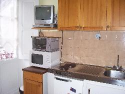 studio au 1er étage d'une petite résidence. très lumineux avec deux portes fenêtres donnant sur balcon avec vue sur montagne et village. coin cuisine tout équipé. salle de bain avec baignoire et wc. coin repas. canapé lit pour 2 personnes et mezzanine pour 2 personnes. placards, chauffage électrique avec cumulus. TV et DVD . a 200 m des commerces