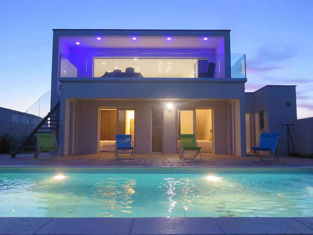 Maison : 130² Couchages : 8, Chambre(s) : 4, Salle(s) de bain : 2 Toilettes séparées : 2 Prix : 200 Euros la nuit.
