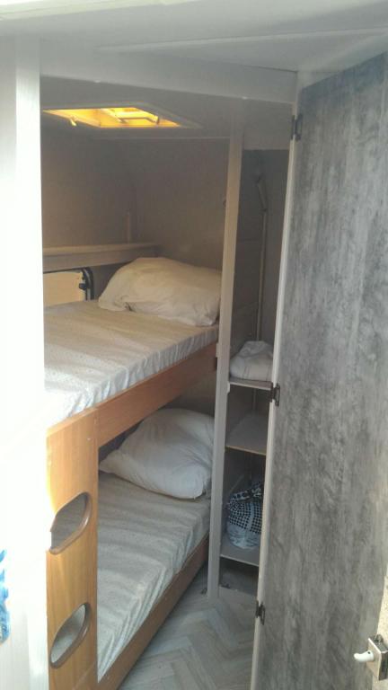Cette caravane est équipée de 2 chambres une avec lit 140 l'autre avec petits lits superposés pour tres jeunes enfants