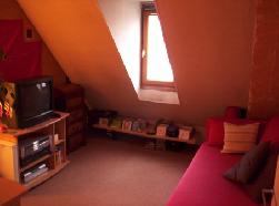 un séjour, un salon, une chambre, une méridienne dans le salon pour couchage.