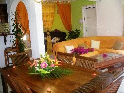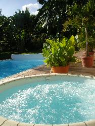 Location saisonnière de vacances d’une villa de charme, tout confort, moustiquaire sur toutes les ouvertures extérieures de la maison, sécurisée (digicode, alarme), équipée de piscine et jacuzzi dans un écrin de verdure de 1400 m2, et mitoyenne à un verger de 5000 m2 pour découvrir les fruits exotiques saisonniers (tels que letchis, mangues, longanis), située à l'Entre-deux au sud ouest de la Réunion, à 15 minutes de Saint-Pierre avec sa station balnéaire, sa plage et sa vie nocturne.