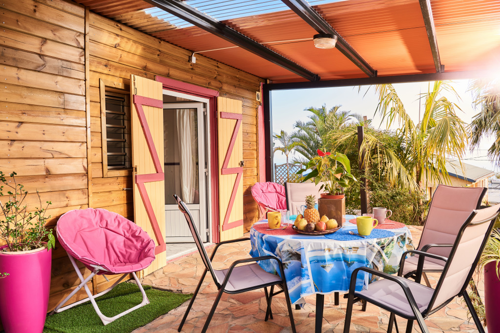 Le Bambou 1 et 2 disposent chacun d'une cuisine équipée, d'une chambre avec lit Queen size (160*200) et d'une salle de douche spacieuse. La capacité d'accueil est 2 personnes par logement. Vous pourrez profitez de la terrasse couverte et du jardin pour vous détendre sur nos transats, et partir à la découverte des beautés de l'île, profiter des sentiers de randonnées, comme des sports et activités nautiques. Le calme, la fraîcheur et la tranquillité vous accompagneront tout au long de votre séjour. Pour votre confort, vous disposerez gratuitement du linge de maison et de toilette ainsi que de la connexion internet par Wi-Fi.