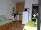 - coin cuisine (plaques électriques 2 feux, mini four, four micro-ondes, frigo avec compartiment congélation, lave linge et lave vaisselle),