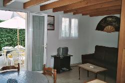 Maison dans résidence privée au calme avec garage, jardin clos arboré. Au rez de chaussée vous trouverez une cuisine américaine, un salon avec canapé lit en 160, une SDB, WC séparés, à l'étage 2 chambres avec grand lit dont une avec un clic-clac en 140 en supp.