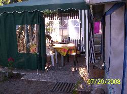 Cazaux (lande girondine) avec son lac de 5600 hectares et son port de plaisance à 10 minutes d'Arcachon/Pyla(dune)/Gujan-Mestras dans un camping ombragé Venez louer une caravane tout confort avec auvent sur plancher et lino ainsi qu'une tonelle sur terrasse dallée. Chambre avec lit 2 pers., banquette adaptable, petit cabinet toilette et clic-clac.