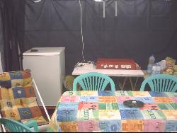 intérieur kitchenette TV 1 grand lit 2 adultes et 2 couchettes enfants.extérieur : 1 auvent aménagé cuisine avec une table et frigidaire, plus une tente soit 2 adultes ou 3 enfants.