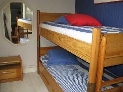 Couchages : 1 Lit 2 personnes (200x140), 1 Lit superposés(200x80), possiblité de rajouter un petit lit d'appoint.