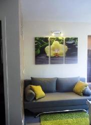 Appartement de 35 m2 en rez de jardin d'une villa avec vue sur ruisseau. Très convivial pour 2 à 4 personnes maximum. Idéalement situé entre mer et montagne, Espagne à 20 km, thermes de Cambo-Les-Bains à 3 km, plages d'Anglet-Biarritz à 25 km. Composé d'un séjour-cuisine avec canapé lit en 140, d'une chambre indépendante avec lit en 140 et lits superposés en 90, salle d'eau avec douche et WC séparé. Jardin cloturé et parking privatif. Tarifs variables selon saison : avril-mai 250 €/s - juin : 280 € / juillet-août : 350 € - septembre : 280 €