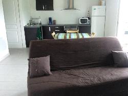 - Séjour lumineux avec une baie vitrée donnant sur la terrasse (25 m²) orientée Sud ouest, vue dégagée (photo). TV plasma