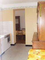 Sur la droite une première chambre comprenant un lit deux personnes, deux tables de chevets, une armoire pin massif, penderie, étagères et tiroirs. Une porte fenêtre donnant sur petit balcon, vue sur la place du fronton ;