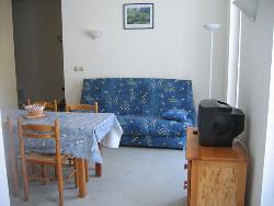 Décoration de charme avec son mobilier en pin, le meublé se caractérise par une alcôve avec 2 lits 90 cm superposés, 1 canapé-lit clic-clac en 130 cm dans le séjour. L’appartement comporte en plus une chambre double.