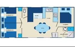 Il est composé de 3 vraies chambres, de WC et salle de bain séparés. Il est équipé d'une terrasse en pierre, d'un auvent, d'un téléviseur, du chauffage et de la climatisation.