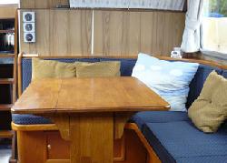 La cabine du skipper avec 2 couchettes de 90 de large, un poste de pilotage avec timonerie, et un carré qui peut éventuellement se transformer pour recevoir vos invités sur une couchette double.